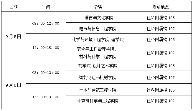 一、学生用书发放时间及地点: