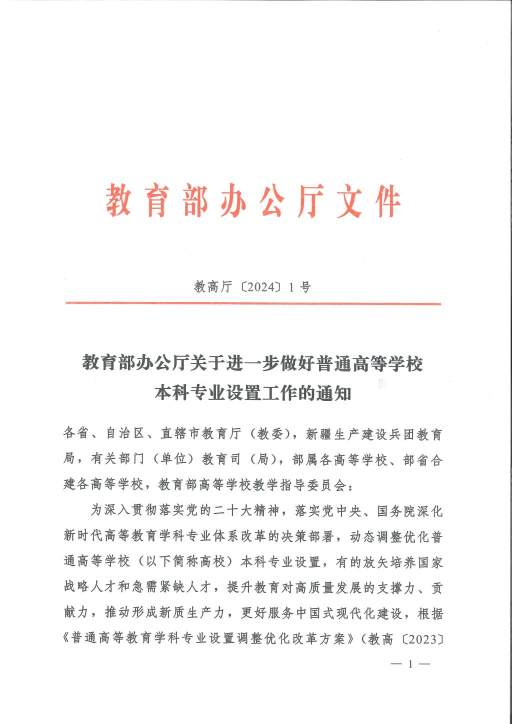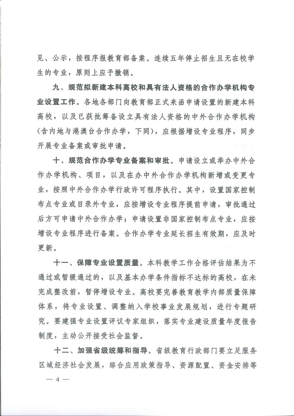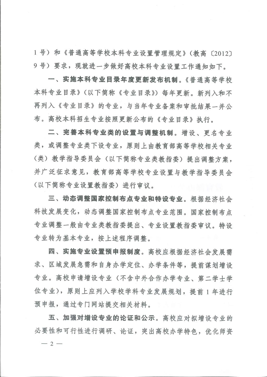 教育部办公厅关于进一步做好普通高等学校本科专业设置工作的通知