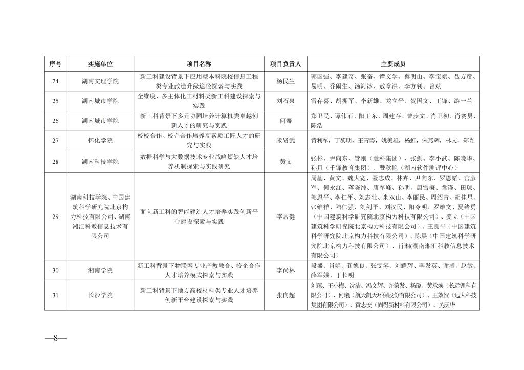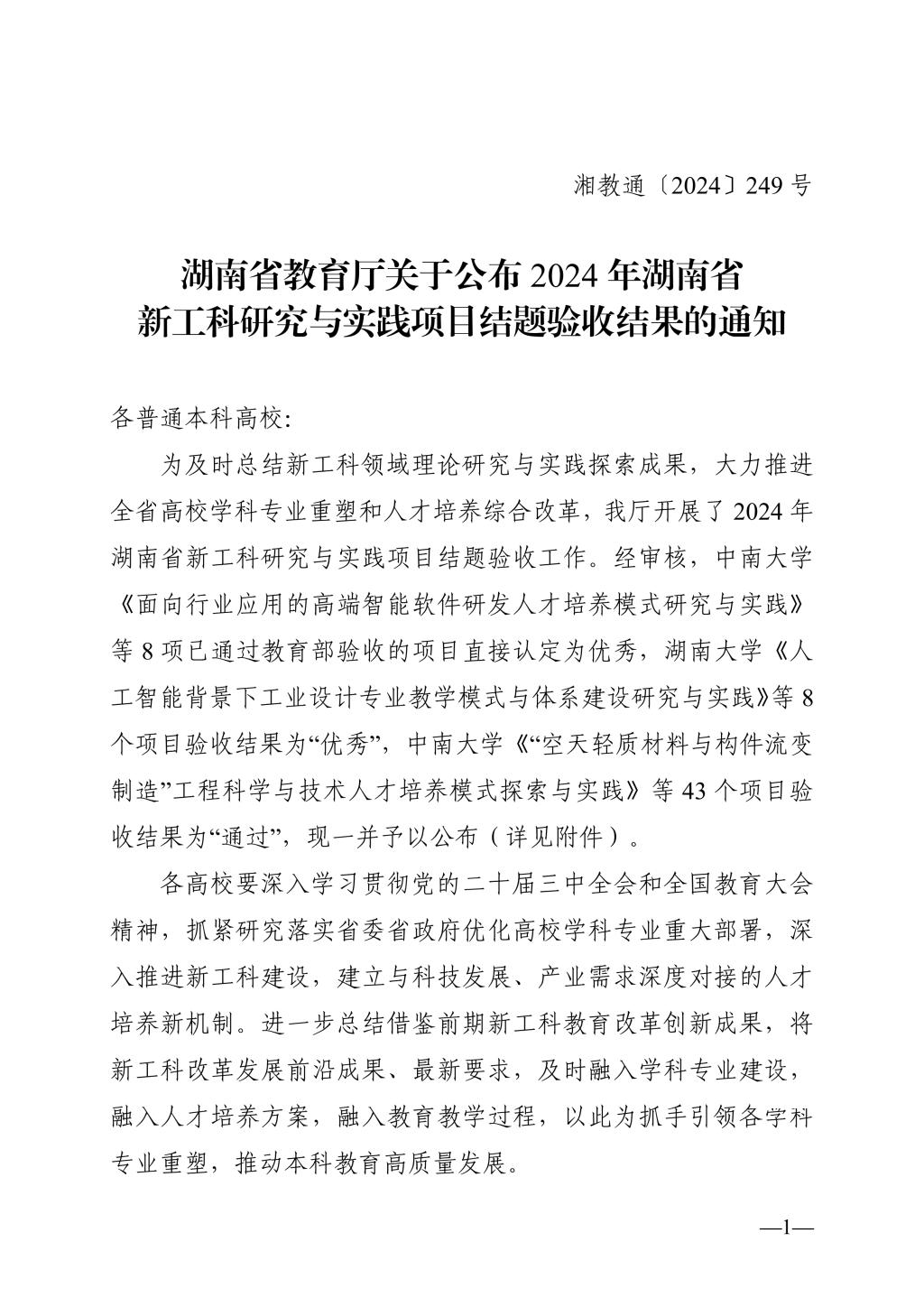 湖南省教育厅关于公布 2024 年湖南省 新工科研究与实践项目结题验收结果的通知