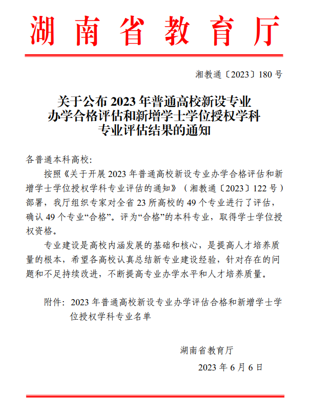 关于公布 2023 年普通高校新设专业办学合格评估和新增学士学位授权学科专业评估结果的通知