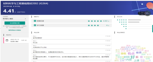 为了照顾部分网络条件不佳的同学,整个课程的直播教学过程进行了视频录制,并将录播视频公开在哔哩哔哩网站上。目前课程录播视频播放次数已经超过500余次。在哔哩哔哩网站直接搜索“材料科学与工程基础”,可学习本课程的录播视频。