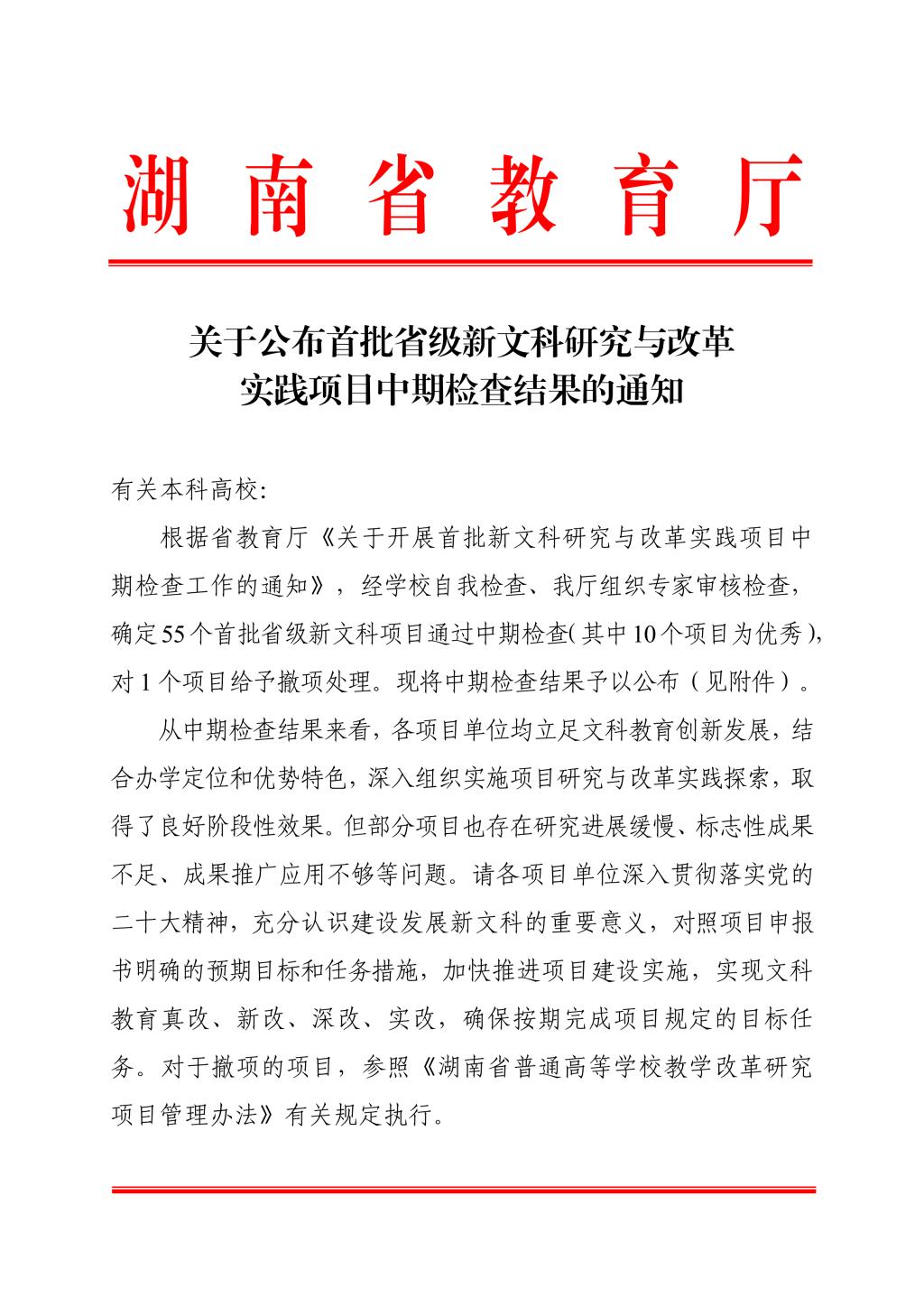 关于公布首批省级新文科研究与改革实践项目中期检查结果的通知(beat365正版唯一官网必一)