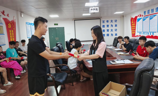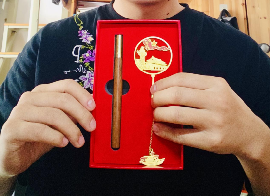 活动在温馨而庄重的氛围中拉开帷幕。支部为毕业生党员们准备的纪念品别具匠心,每一件都蕴含深意。刻有“清正廉洁”字样的檀木笔,笔身纹理细腻,字迹苍劲有力,寄托着对毕业生党员坚守廉洁底线、永葆政治本色的深切期望;天安门配红船造型的书签,将象征国家荣耀的天安门与承载建党精神的红船巧妙融合,承载着支部对毕业生党员的殷殷期盼,愿他们在未来征途上,始终铭记党员身份,以初心照亮前行之路,用行动诠释使命担当。