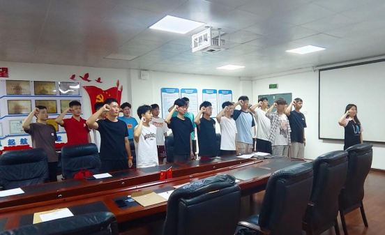 在仪式的重要环节,全体党员身姿挺拔、神情肃穆,在支部书记王雪舟的带领下,高举右拳,目光如炬地注视着面前鲜红的党旗。“我志愿加入中国共产党…… 随时准备为党和人民牺牲一切,永不叛党。”誓言字字千钧,如洪钟般响彻活动现场,声波裹挟着党员们炽热的忠诚与坚定的信仰,在每个人心间激荡回响。这铿锵有力的誓言,不仅是对入党初心的回溯,更让全体党员进一步坚定了理想信念,深刻明晰了自己肩负的时代责任与历史使命。