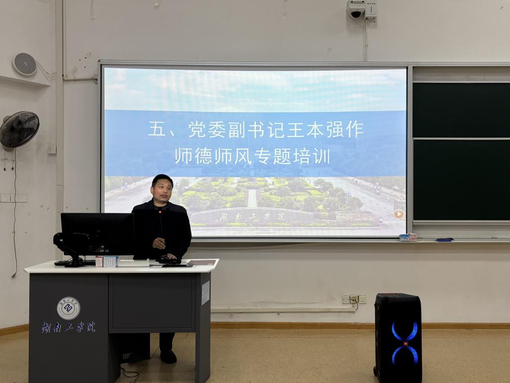 会上,党委副书记王本强带领全体教职工重点学习《湖南省高校教师违反职业道德行为处理实施办法》,详细解读了违规行为及其适用的处理,引导教师明确行为边界,坚守职业操守;同时,组织学习《beat365正版唯一官网必一学生考勤管理规定》《beat365正版唯一官网必一课程考核与成绩管理办法》,强调教师要严格履行教学职责,规范教学管理,将师德师风要求融入教育教学全过程,做到教书与育人相统一。