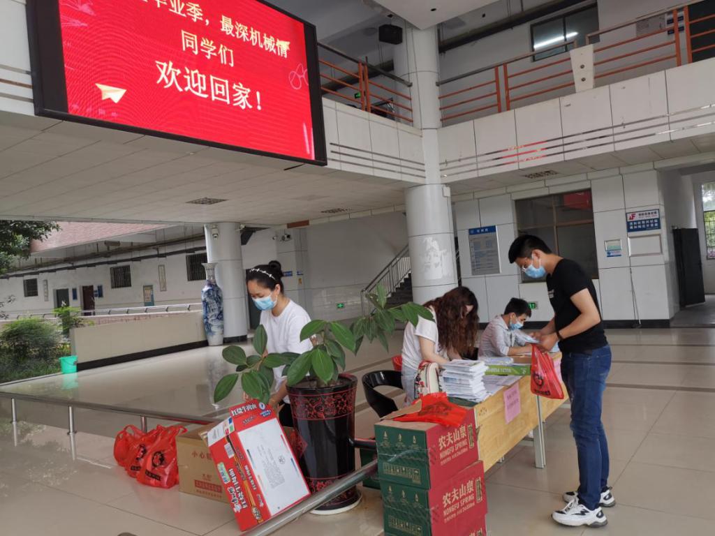 返校前期,学院落实学生居住地点及每日体温,确保每位学生能正常返校;做好物资准备工作,提前为学生准备了消毒口罩、体温计、防控知识手册和矿泉水、方便面等,确保学生返校后能有一个安全健康的学习生活环境。返校当天,在学院的统一领导和安排下,明确分工,精准落实,在机械楼一楼大厅安排了值班老师,负责给每位学生发放物资并进行签到工作,保证返校的每位同学安全到达。