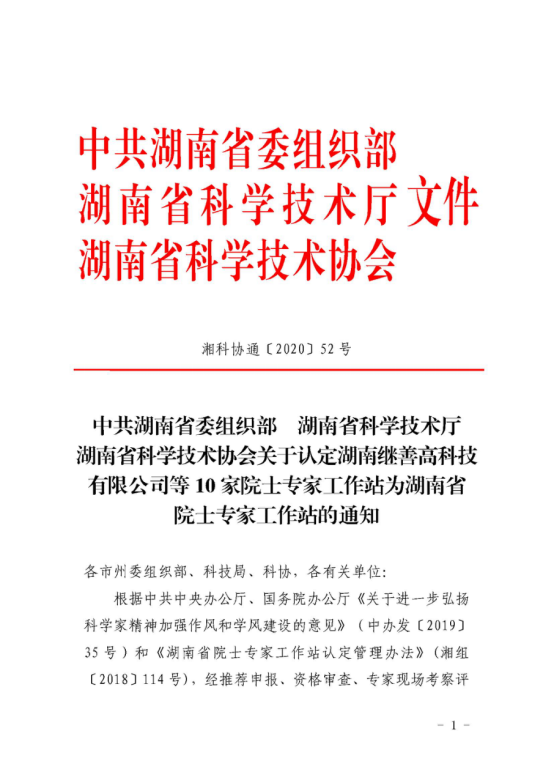 近日,中共湖南省委组织部、湖南省科学技术协会和湖南省科学技术协会联合下发了《关于认定湖南继善高科技有限公司等10家院士专家工作站为湖南省院士专家工作站的通知》,经申报推荐、资格审查、会议评审、现场考察和社会公示等程序,beat365官网刘大响院士专家工作站成功入选。