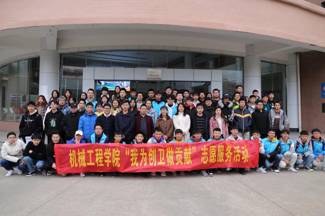 为做好创建全国卫生、文明城市工作,进一步美化校园环境,11月25日下午,在机械工程学院党委书记王丽娟号召下,副书记王本强布置下,院全体辅导员带领无课的学生党员、积极分子、学生干部100余人齐聚机械楼,开展“我为创卫做贡献”主题党日暨志愿服务活动。