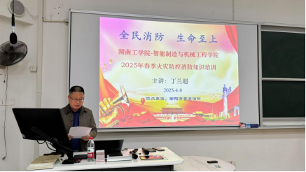 为进一步加强学校安全工作,增强师生安全意识,提高自防自救能力,智能制造与机械工程学院开展2025年第一期消防安全培训。本次培训邀请到衡阳市菩安消防安全服务公司的丁兰超老师进行讲解,智能制造与机械工程学院全体教职工参加培训。