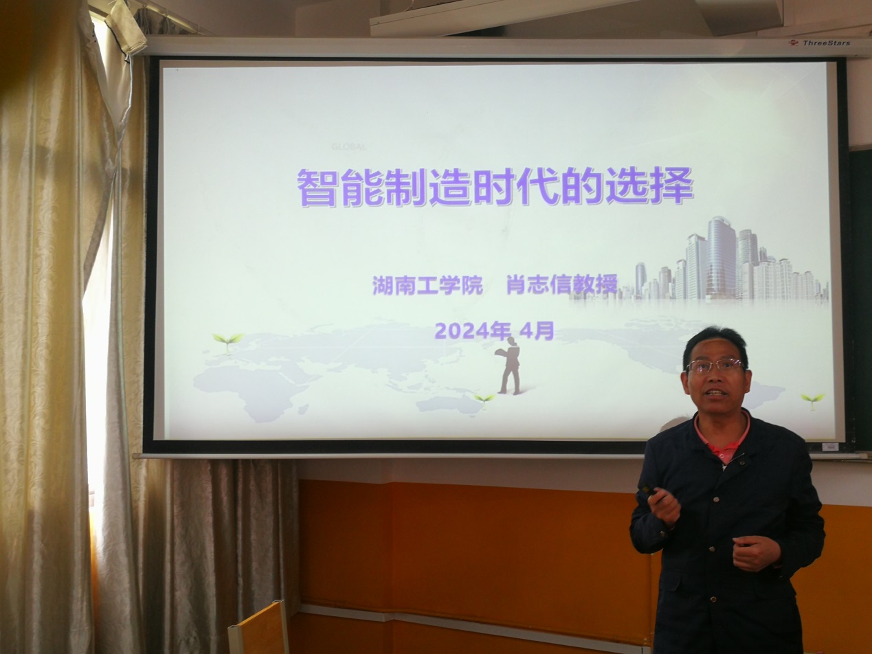 2024年4月13日下午,beat365官网肖志信教授应邀在4504多媒体教室作了题为“智能制造时代的选择”的学术讲座。智能制造与机械工程学院智能车辆工程专业2201班40余名同学和部分教师参加了本次讲座。