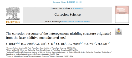 发表在《Corrosion Science》题为“The corrosion response of the heterogeneous nitriding structure originated from the laser additive manufactured steel”科研成果,重点探究了增材制造特征胞状亚晶结构导致的异质氮化结构的腐蚀行为特性及机理,借助XRD、SEM、EDS、EIS和TEM等多尺度分析检测技术,表征了异质氮化结构在腐蚀过程中的电化学参数差异、形貌变化和微结构演变,研究成果为推进增材制造钢件在腐蚀环境的规模化应用提供指导。该成果第一作者为汽车零部件技术研究院洪悦博士,于2022年6月进入学校工作,主要面向汽车零部件高效精密加工场景,开展金属材料显微分析及表层强韧化相关的应用基础研究;入职以来主持湖南省自然科学基金项目1项,企业技术服务项目1项,指导学生参加挑战杯和“互联网+”创新创业大赛各1项。