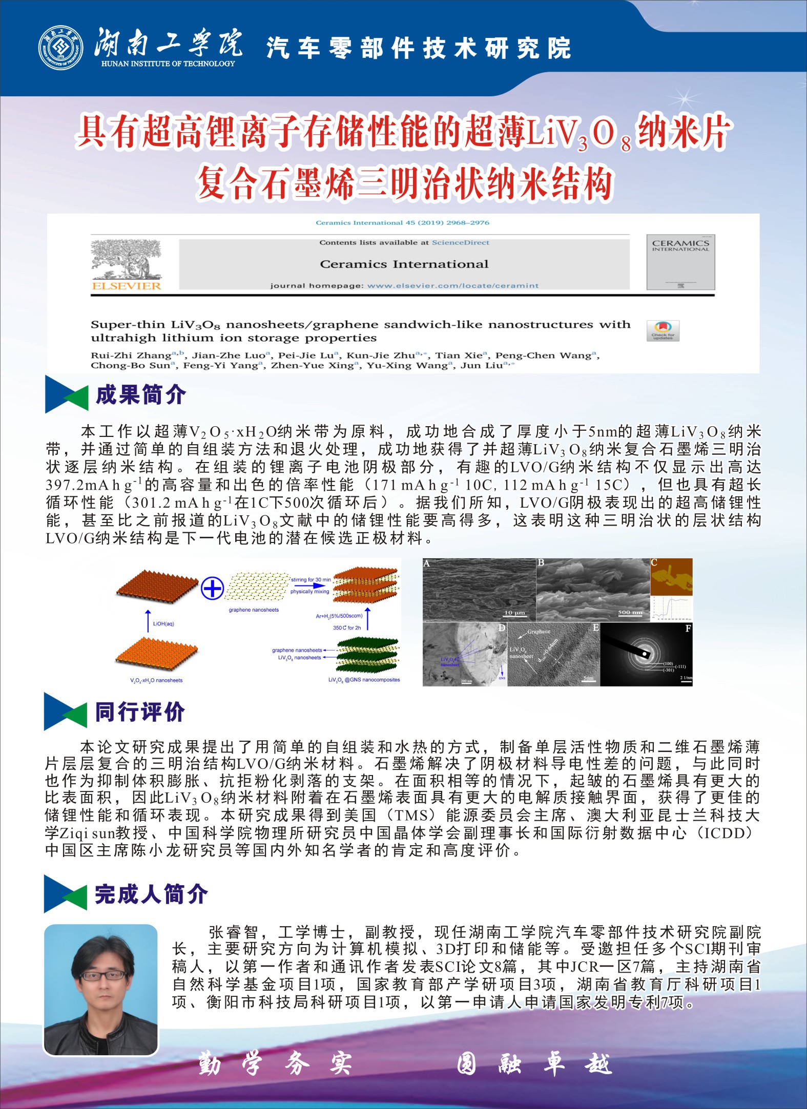 张睿智---具有超高锂离子存储性能的超薄LiV3O8纳米片复合石墨烯三明治状纳米结构