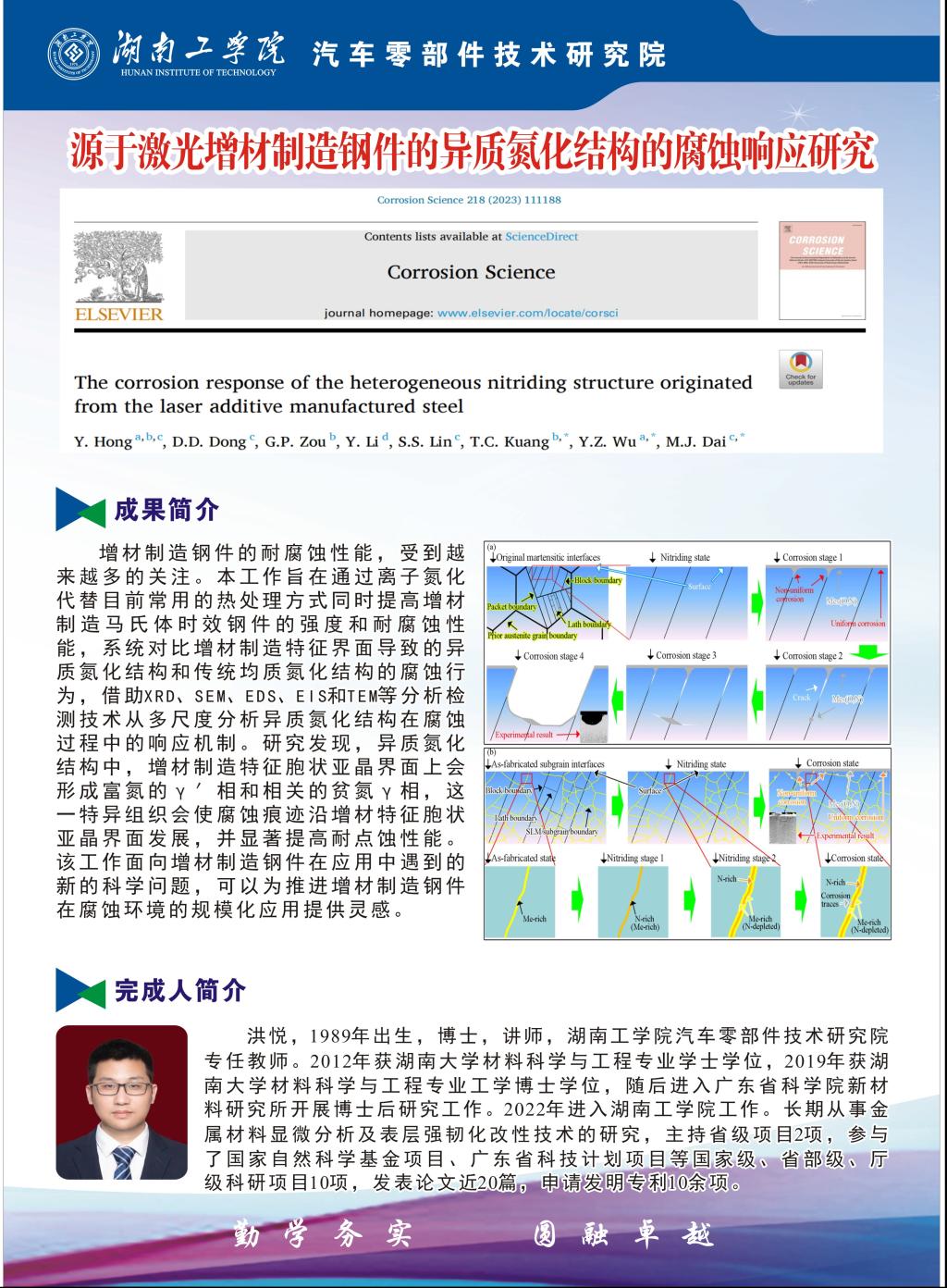 洪悦——源于激光增材制造钢件的异质氮化结构的腐蚀响应研究