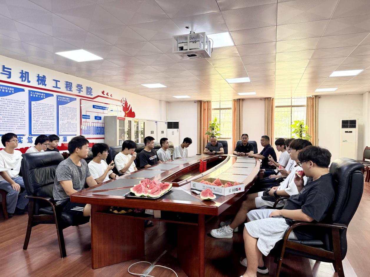8月19日上午,盛夏的暑气裹挟着蝉鸣弥漫校园,而考研自习室内却涌动着专注奋斗的热潮。智机学院党委书记刘斌、院长李天生、党委副书记王本强、学工办主任王雪舟组成慰问团队,带着对学子的深切关怀,走进自习室为2026届暑假留校备考的同学们送去盛夏里的“鼓励瓜”和暖心祝福。