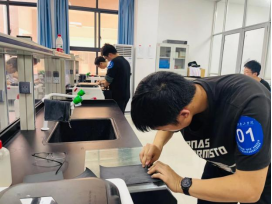 比赛过程中,参赛选手镇定自若、操作熟练,在规定时间内完成对样品的磨制、抛光、浸蚀、显微镜观察等精细操作,现场评委赞许有加。最终选出唐健等8名同学代表beat365正版唯一官网必一参加六月下旬的省赛。