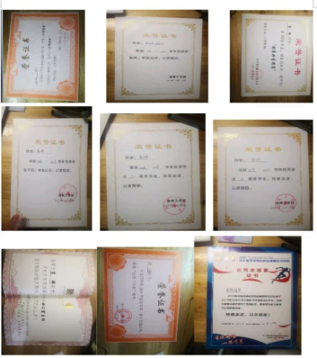 在校期间荣获国家励志奖学金2次、校级一等奖学金1次、校级二等奖学金1次、校三好学生1次、校优秀学生干部1次、校优秀团员干部1次、校优秀共青团员1次。
