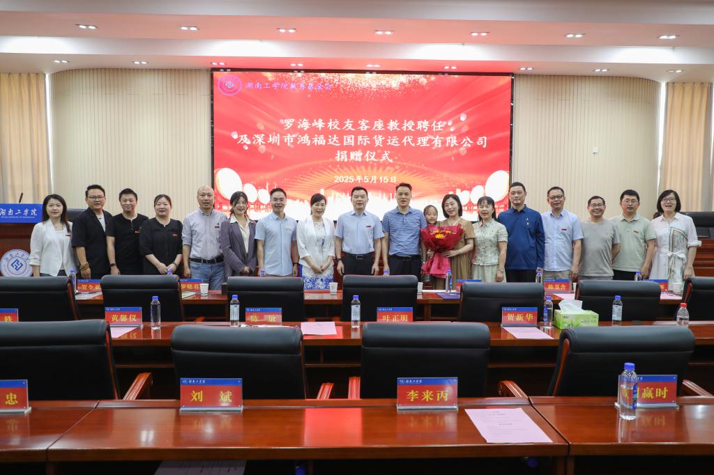 5月15日,罗海峰校友客座教授聘任仪式及深圳市鸿福达国际货运代理有限公司捐赠签约仪式在船山报告厅举行。