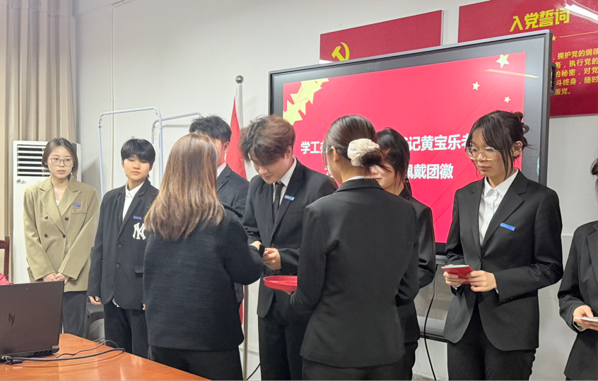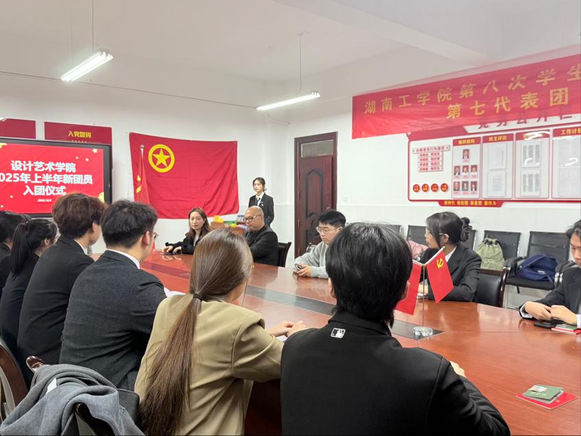 为增强新团员的组织归属感与责任使命感,凝聚青年力量,12月8日,设计艺术学院于学院会议室举行“青春心向党,筑梦新征程”新团员入团仪式。学院党委副书记刘易华、学工办主任兼分团委书记黄宝乐、辅导员黄冬春和周海龙出席仪式,全体新团员及优秀团员代表共同参与,现场氛围庄重而热烈。