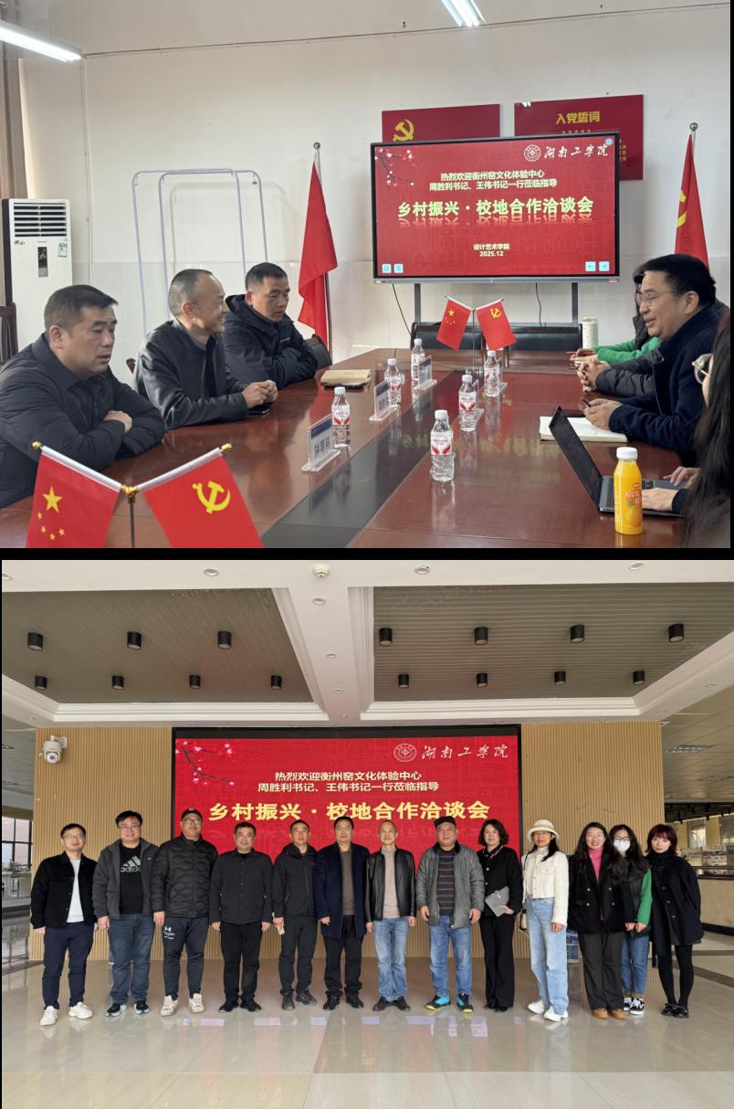2025年12月8日,珠晖区皇田村第一书记周胜利、书记王伟一行莅临beat365官网设计艺术学院,就深化乡村振兴工作进行深度洽谈。学院党政领导班子及相关教师代表参加会议。