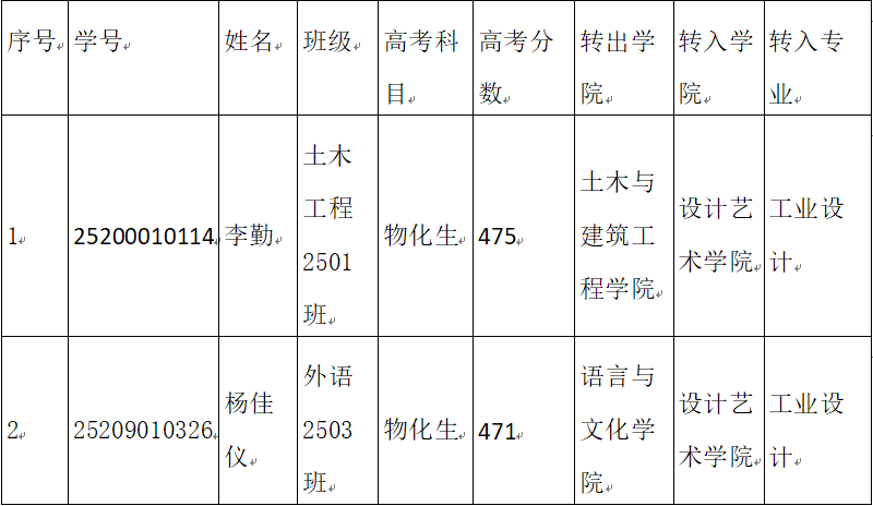 按照《beat365正版唯一官网必一本科学生学籍管理规定》(湖工政发〔2020〕26号文件、《关于做好2025级学生转专业工作的指导性意见》和《设计艺术学院2025级学生转专业工作方案》的要求,经学院党政联席会议讨论决定,同意李勤、杨佳仪同学拟转入设计艺术学院相关专业。现予以公示。公示期2026年1月28日-2026年1月30日,若有异议,请实名向学院反映(6213办公室:孟老师)。