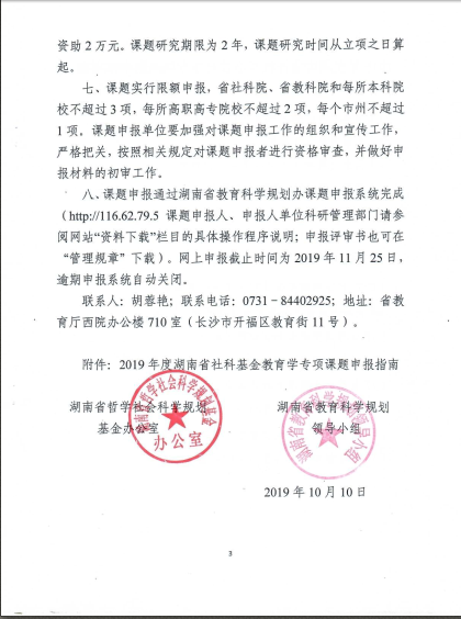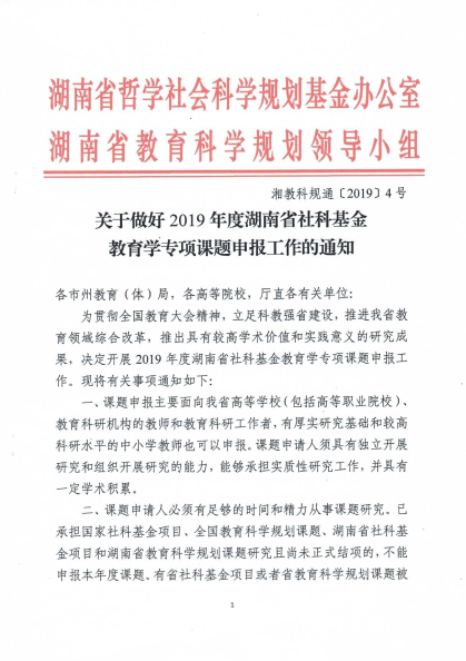 转发:关于做好2019年度湖南省社科基金教育学专项课题申报工作的通知