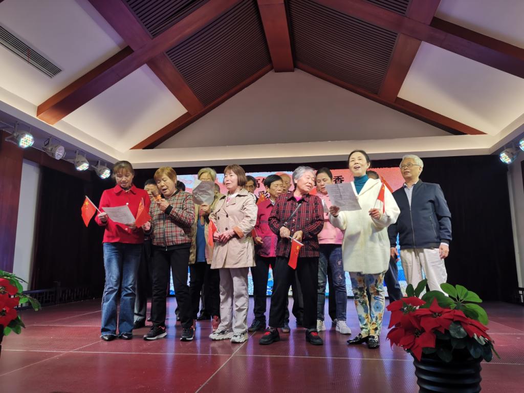 离退休老同志以支部为单位表演了丰富多彩的文艺节目,表达了爱党爱国情怀。