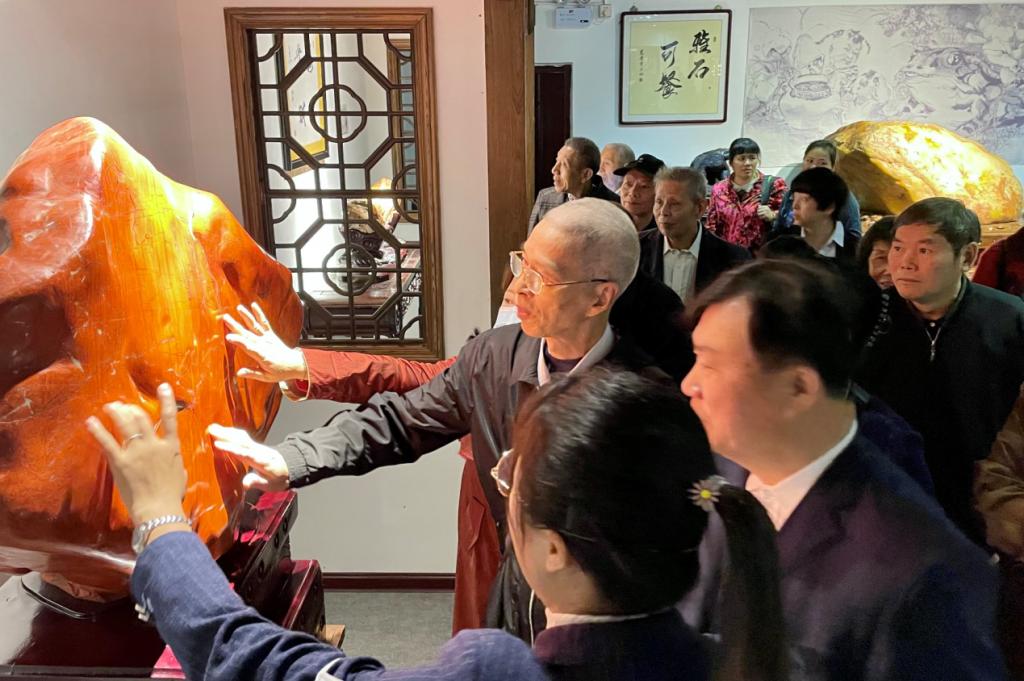 老同志参观奇石,互道情谊,感受自然神奇,共祝美好未来