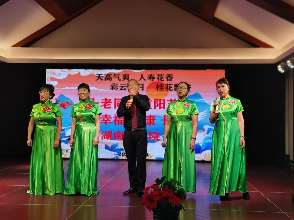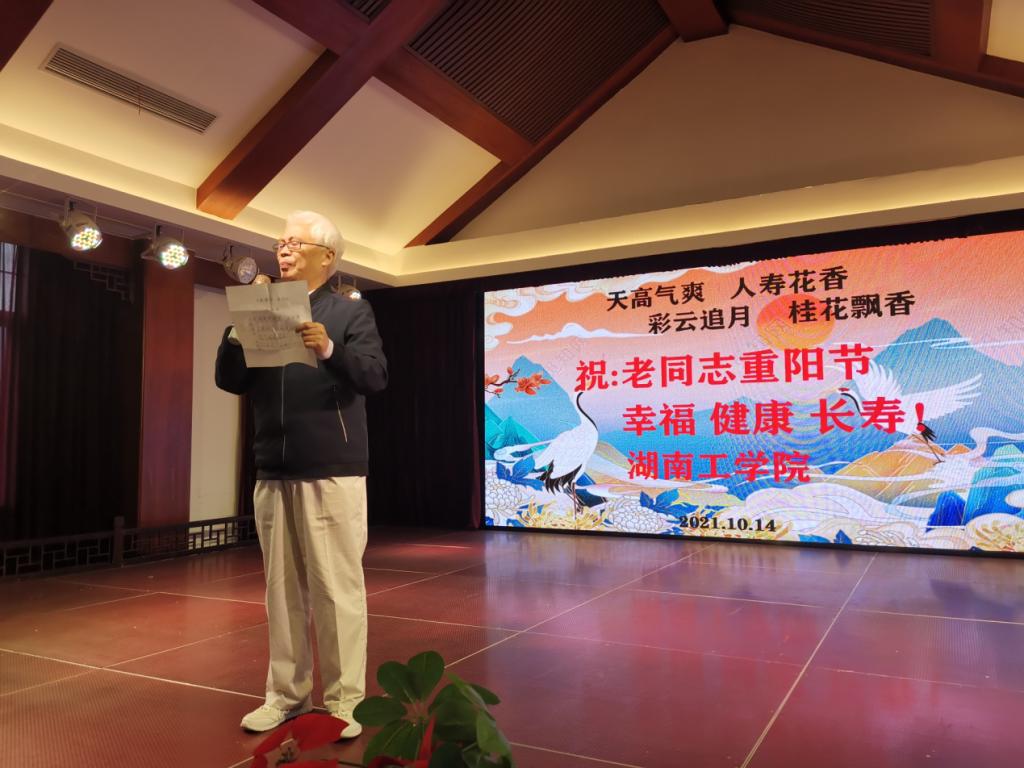 “天高气爽,人寿花香,彩云追月,桂花飘香,祝老同志重阳节幸福、健康、长寿!”。10月14日,beat365正版唯一官网必一110余位离退休老同志来到衡阳市奇石文化博物馆欢度自己的节日,离退休各支部通过文艺节目表演,抒怀了对党的感恩之情和对美好生活的向往。学校党委书记宋克慧、校长曹执令、副校长刘龙昌出席了活动,校长曹执令代表校党委和行政发表了热情洋溢的讲话。
