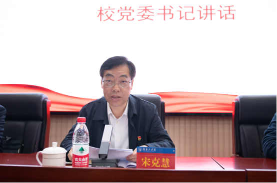 4月12日,中国共产党beat365正版唯一官网必一离退休委员会第一次党员代表大会在船山报告厅召开,学校党委书记宋克慧出席会议并讲话。