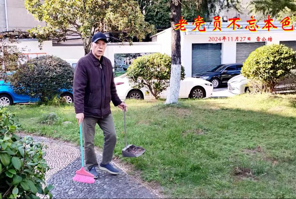 活动现场,老同志们自带扫帚、簸箕等清扫工具,自由组队、分工合作。他们平均年龄70多岁,最大年龄89岁,有的已满头银发,有的已呈耄耋之态,但在清扫落叶和垃圾的过程中一丝不苟、认真负责,忙碌的身影成为了社区马路上一道道亮丽的风景线。老党员周柏荣说,作为老党员,我们有义务、有责任在力所能及的范围内参加志愿服务,为营造干净、整洁、舒适的小区环境贡献绵薄之力,争取向“夕阳晚景映松柏,银发应衬党旗色”的境界看齐。