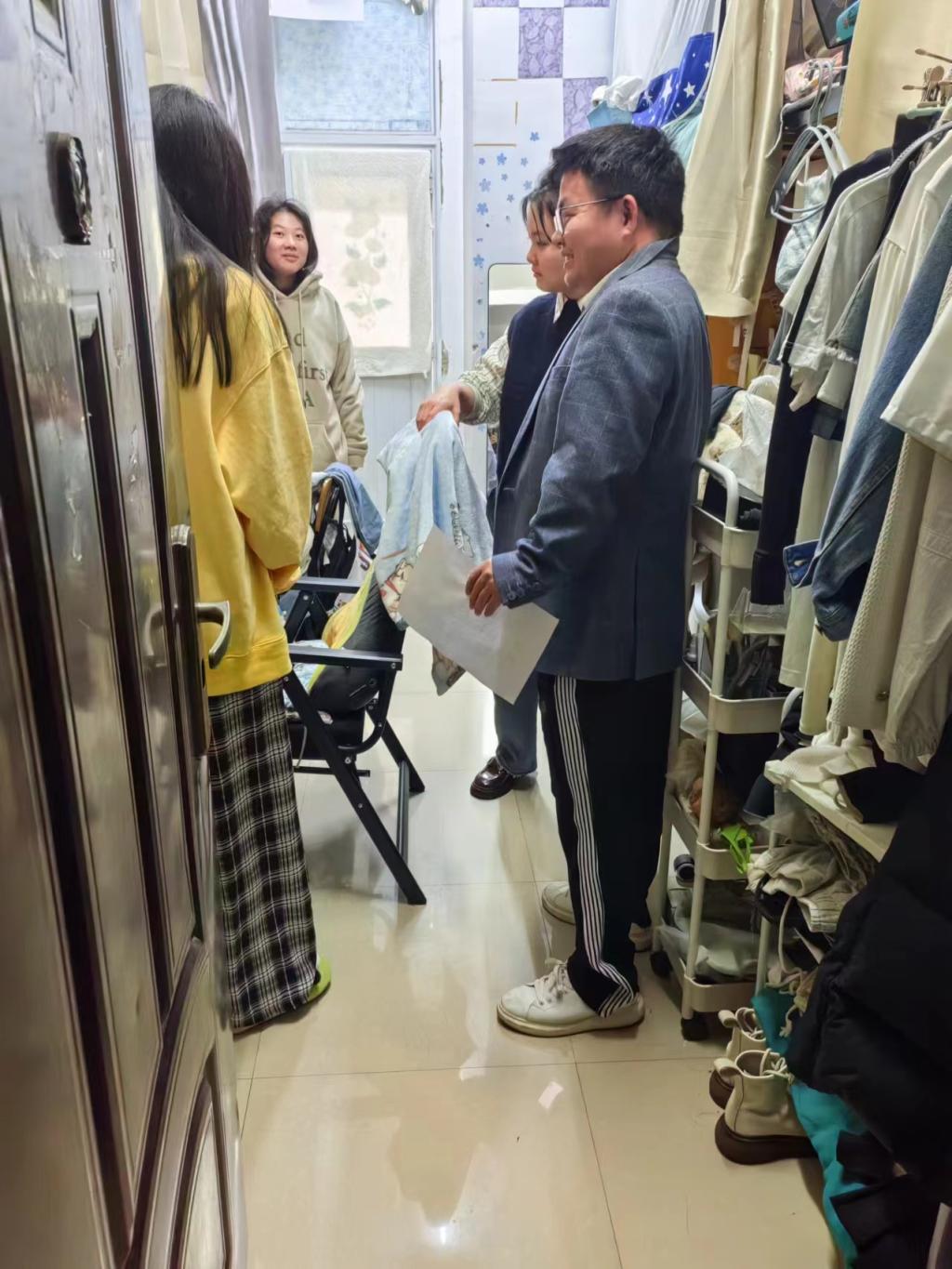 检查过程中,辅导员、班主任叮嘱大家务必注意宿舍用电安全,养成良好的卫生习惯,定时打扫宿舍卫生,保持室内通风,预防疾病的传播,共同营造一个和谐、安全的学习和生活氛围。走访过程中,还对大家提出的学业、生活、就业等问题进行了一一解答。