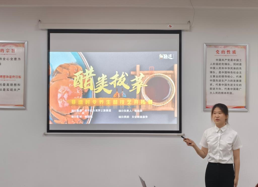 大赛在热烈的氛围中拉开帷幕。九支参赛队伍依次登台,由团队代表通过PPT展示、视频演示等多种形式,详细介绍了各自的创业项目。项目涵盖人工智能、绿色环保、文化创意、医疗服务等多个领域,充分展现了同学们敏锐的市场洞察力与创新思维。