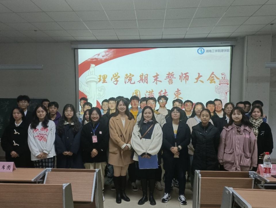为进一步弘扬优良学风,加强教育教学常规管理,严肃考风考纪,加强大学生诚信意识,12月16日,理学院在数理楼608隆重举行期末考试誓师大会。学工办主任兼分团委书记张艳霞、辅导员旷惠琦、新生班主任刘娟、蒋丽、殷瑛老师出席了此次大会。