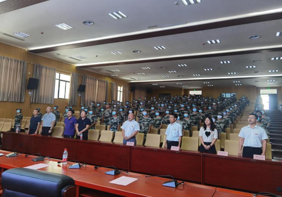 典礼正值国庆前夕,全体师生高声齐唱《今天是你的生日,中国》。用豪迈的歌声表达对祖国的深情赞美和深厚热爱,感念党恩,颂扬新时代。