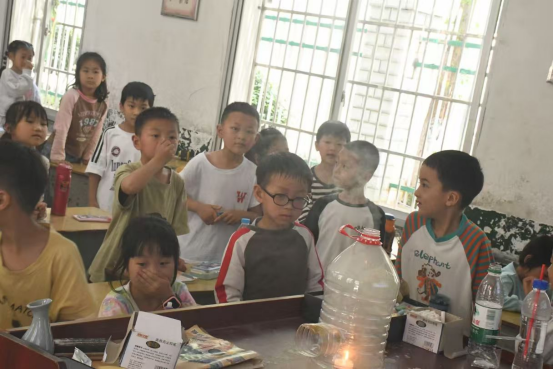 课堂上,志愿者们从生活中的常见现象入手,抛出一个个饶有趣味的问题,瞬间点燃了孩子们眼中的好奇火花。紧接着,“烟囱效应大挑战”“自制饮水机大挑战”“神奇的瓶子”等一系列妙趣横生的实验轮番上演。