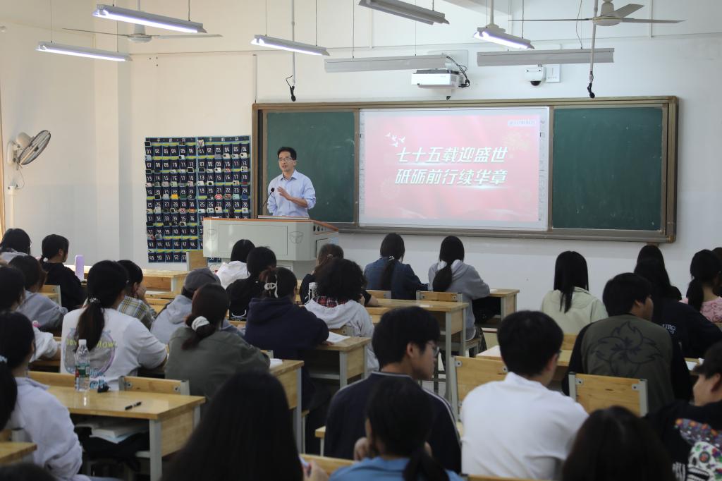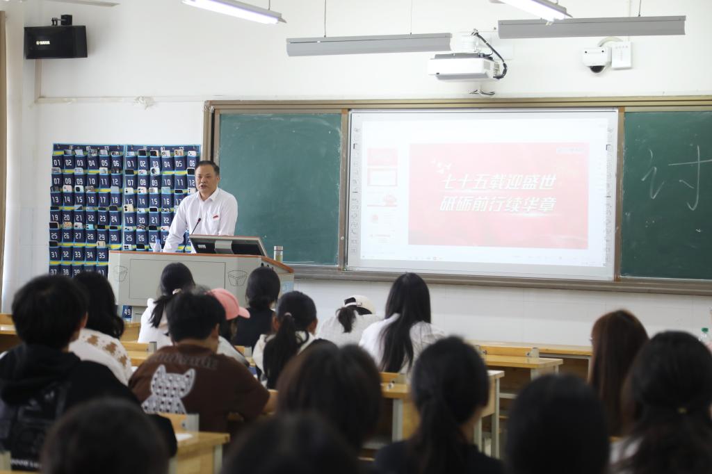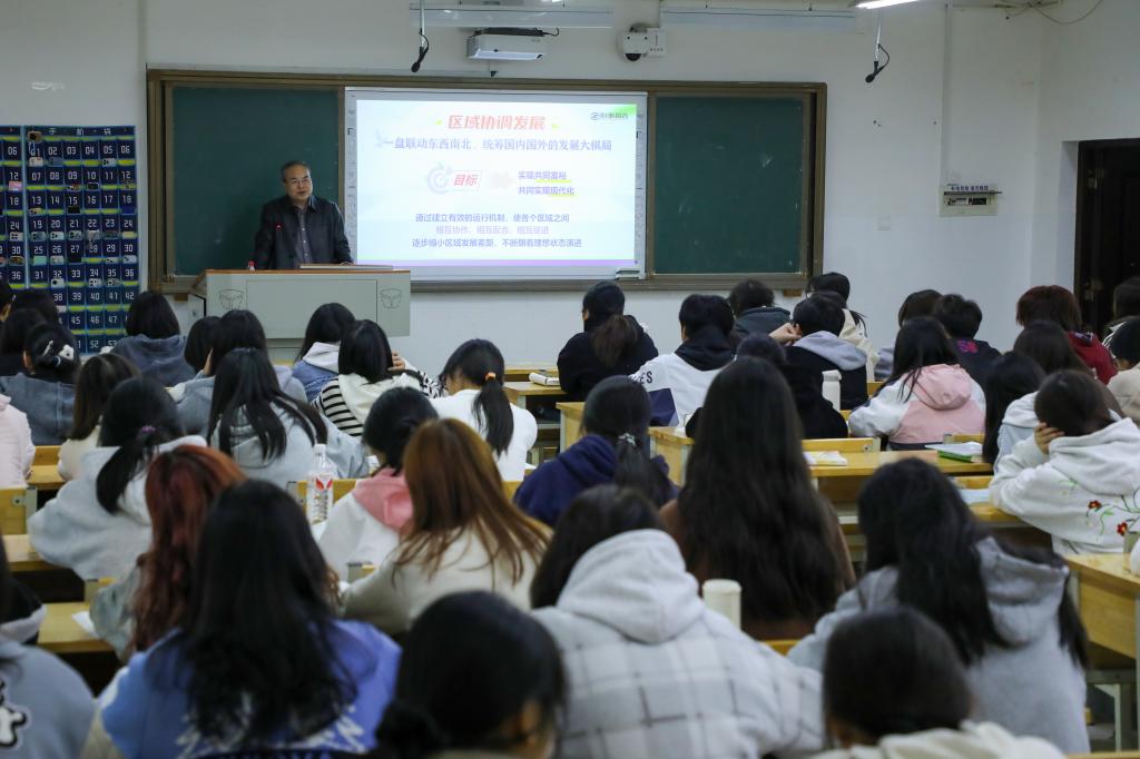 副校长刘龙昌、副校长黄红卫、党委副书记何建雄、副校长柳星、副校长谢柯、党委委员袁勤,分别围绕“推动构建新时代的大国关系格局”“下好区域协调发展这盘棋”“七十五载迎盛世 砥砺前行续华章”等时事热点进行了专题授课。校领导们以严谨的治学态度和接地气的语言,给学生们带来了一堂堂内容丰富、讲解深刻、气氛活跃的“理论盛宴”。