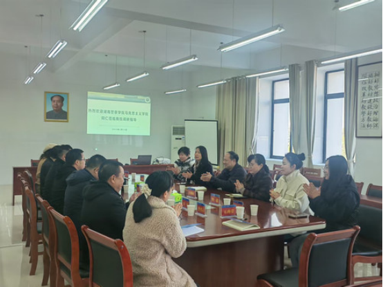 1月14日,湖南警察学院马克思主义学院院长唐励一行来我院交流学习。我院党政领导班子及教研室主任参加了此次交流会。