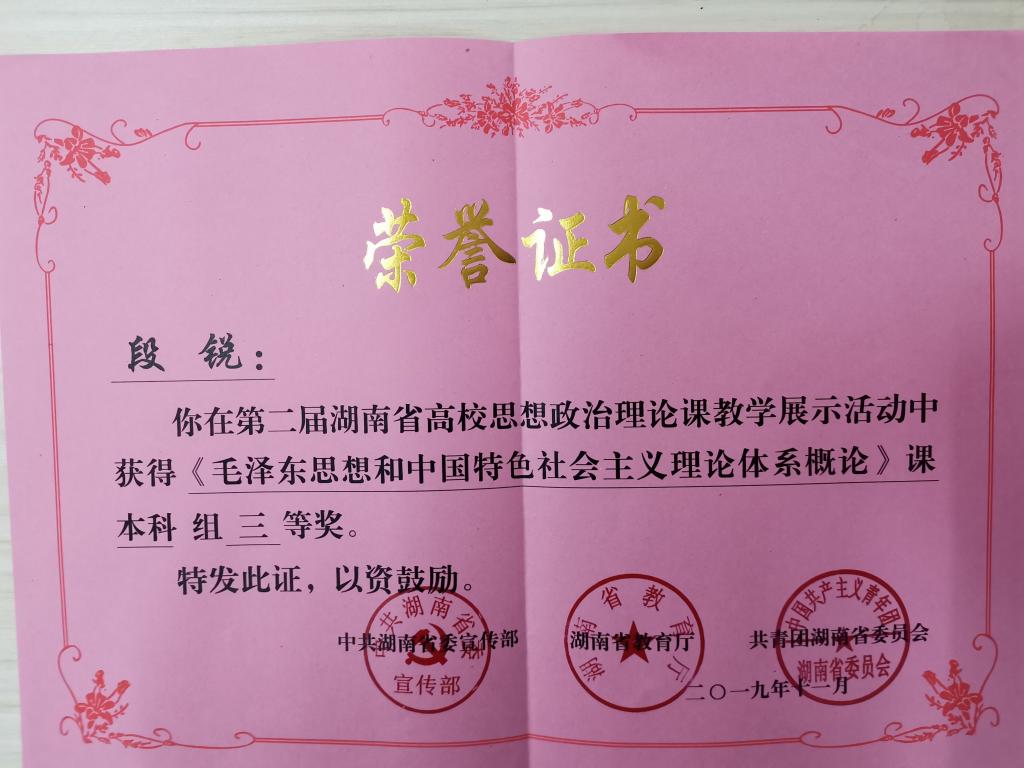 近日,“湖南省第二届高校思想政治理论课教学展示活动” 结果公布,beat365官网马克思主义院段锐博士喜获本科组三等奖。