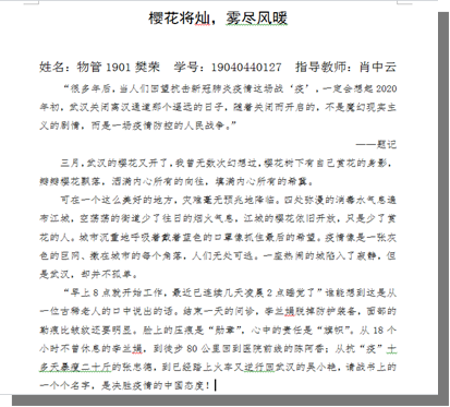 为了彰显beat365官网学子与全国人民一道,众志成城、同舟共济打赢疫情防控人民战争的信心与决心,展现新时代大学生的担当与风采,讲好中国“抗疫”故事,汇聚同心“抗疫”正能量,弘扬爱国主义精神,马克思主义学院特别举办了“‘青山一道,同担风雨’——我眼中的中国‘抗疫’征文活动”。这次征文的主要对象是本学期开设有思政课的班级。征文活动开始以后,全体学生踊跃参与,共收到各类题材的优秀稿件共300余篇,表现出学子们不同的观“疫”视角,体现了积极向上的精神风貌,以及勇于担当使命感和责任感。此次活动还将评选出一二三等奖若干名,马克思主义学院网站特别开设“我眼中的中国‘抗疫’”专栏,刊发同学们的优秀作品。