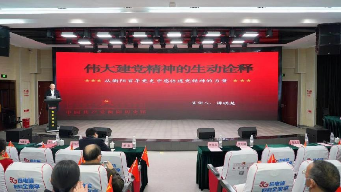 谭明楚教授用翔实的史料、丰富的图片、生动的故事,声情并茂地讲述了建党一百年来衡阳革命先辈及改革先锋们的英雄事迹和奋斗历程,在长期的革命斗争中,一大批衡阳人民为了真理、为了信仰、为了主义献出了自己的生命,这也时刻提醒我们,传承红色基因,发扬光荣传统,不忘初心、牢记使命。