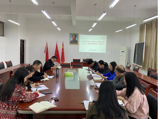 近日,马克思主义学院召开学习贯彻党的二十大精神研会暨“党的二十大精神融入思政课教学”集体备课会。会议由党总支书记叶正明主持,副院长段锐、各党支部书记、教研室(实践教学中心)负责人以及全体坐班人员参加。