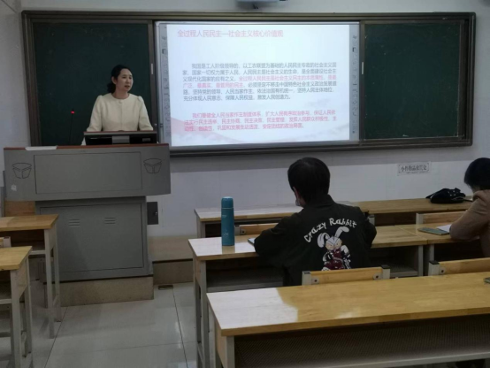 首先,廖金芳就党的二十大精神融入《思想道德与法治》课的具体章节进行了详细阐述,并强调如何将党的二十大精神及时融入思政课,是摆在每一位思政课教师面前的重要任务。作为思政课教师,我们要将党的二十大精神融入课堂与实践环节,提升思政课的教学质量,要把握青年学生的特点,用青年学生听得懂的语言,以更易理解、更好把握的方式诠释党的二十大报告精神,要注重时效、注重方法、注重效果,让党的二十大精神第一时间进教材、进课堂、进头脑。