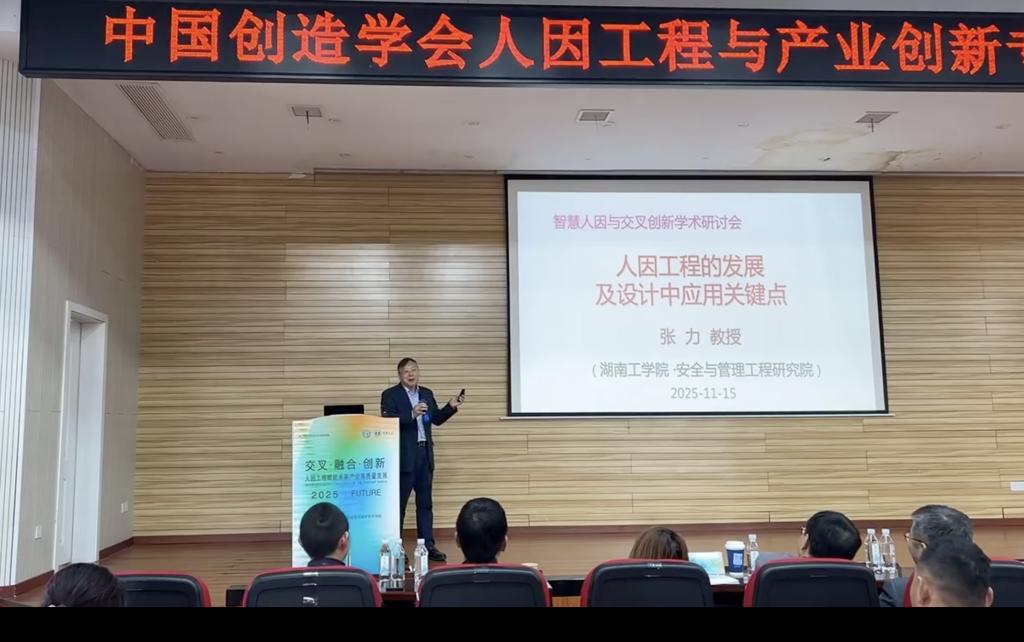 2025年11月15日,由中国创造学会人因工程与产业创新专业委员会主办的智慧人因与交叉创新学术研讨会在衡阳举行,会议以“交叉·融合·创新——人因工程赋能未来产业高质量发展”为主题,汇集了来自复旦大学、浙江大学、北京理工大学、湖南大学、南华大学、beat365正版唯一官网必一等高校、各科研院所及企业的200余位专家学者。我院张力教授受邀出席会议,并与复旦大学林燕丹教授共同担任会议主席。会上,张力教授还受邀作会议主旨报告《人因工程的发展及设计中应用关键点》,报告内容兼具理论高度与实践指导意义,受到与会专家的热烈反响。(文、图/陈帅 审稿人/一审:陈帅 二审:青涛 三审:胡鸿)