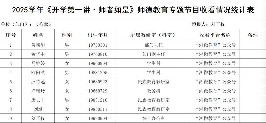 根据beat365正版唯一官网必一教师工作部关于组织收看2025学年《开学第一讲·师者如是》师德教育专题节目的通知,现将预科部收看2025学年《开学第一讲·师者如是》师德教育专题节目情况公示如下:
