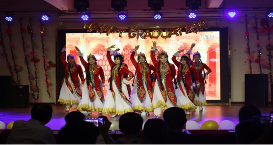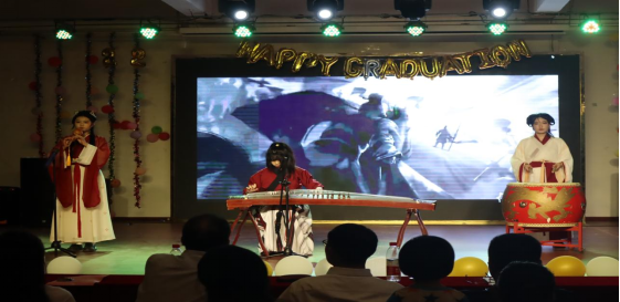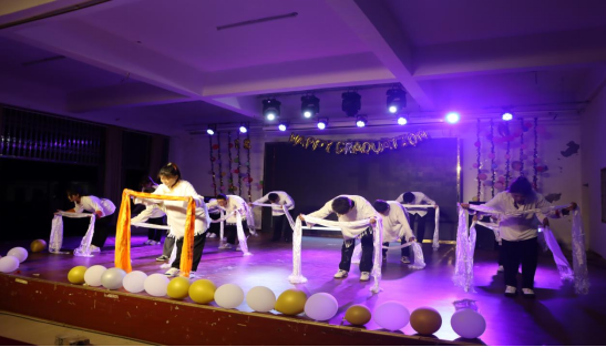 典礼在学生载歌载舞的文艺汇演中被推向新的高潮,新疆舞《西域风情》和藏族舞《藏舞王朝》展现了优秀地域文化;歌曲《only time》展现了学生英语表达风采;大合唱《我和我的祖国》表达了对中华民族大团结的积极愿景,晚会上器乐演奏、青春放歌、活力舞蹈等各类节目形态精彩纷呈,表达了学生对未来的美好向往。