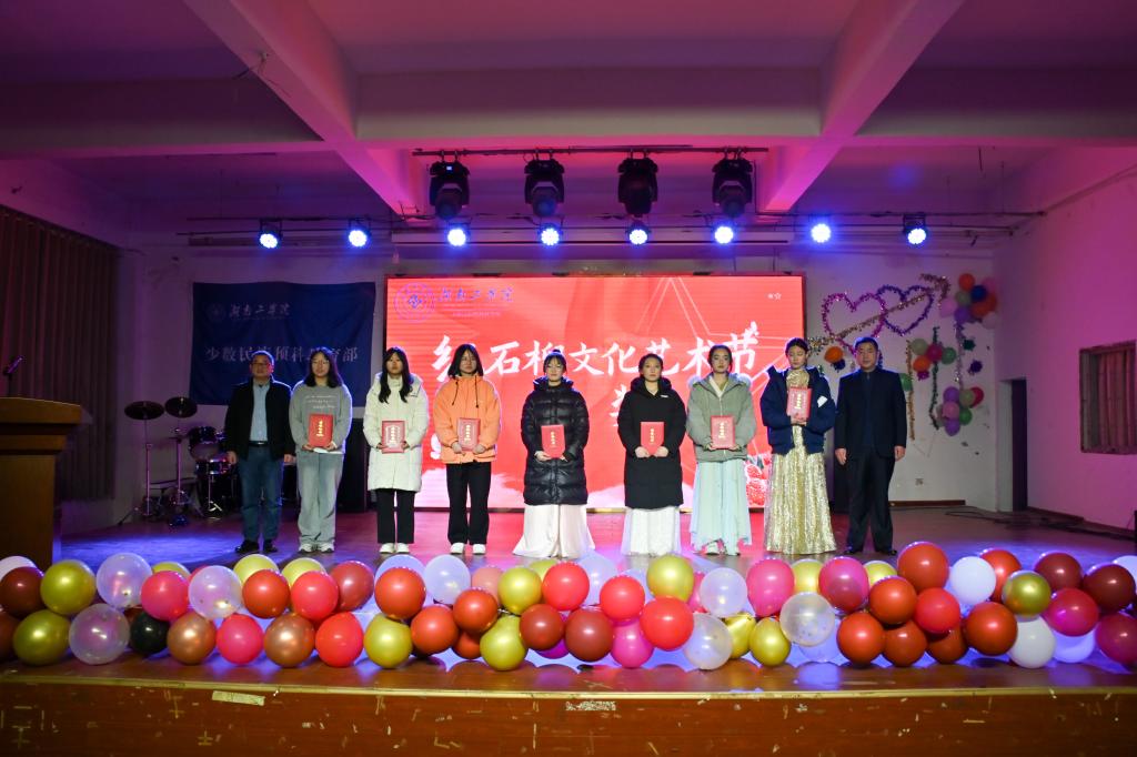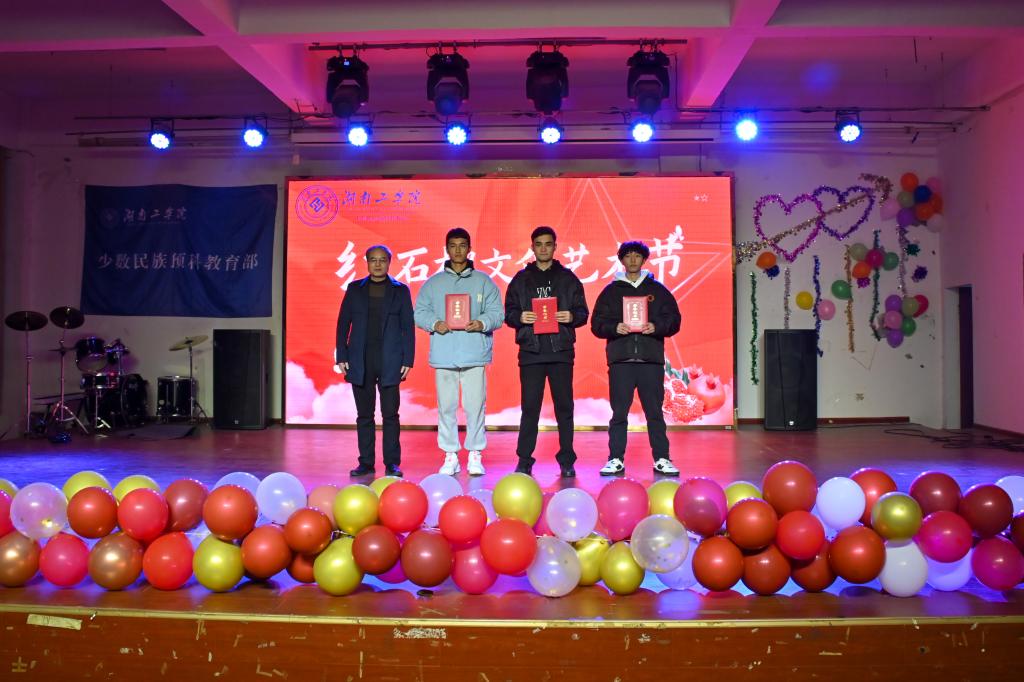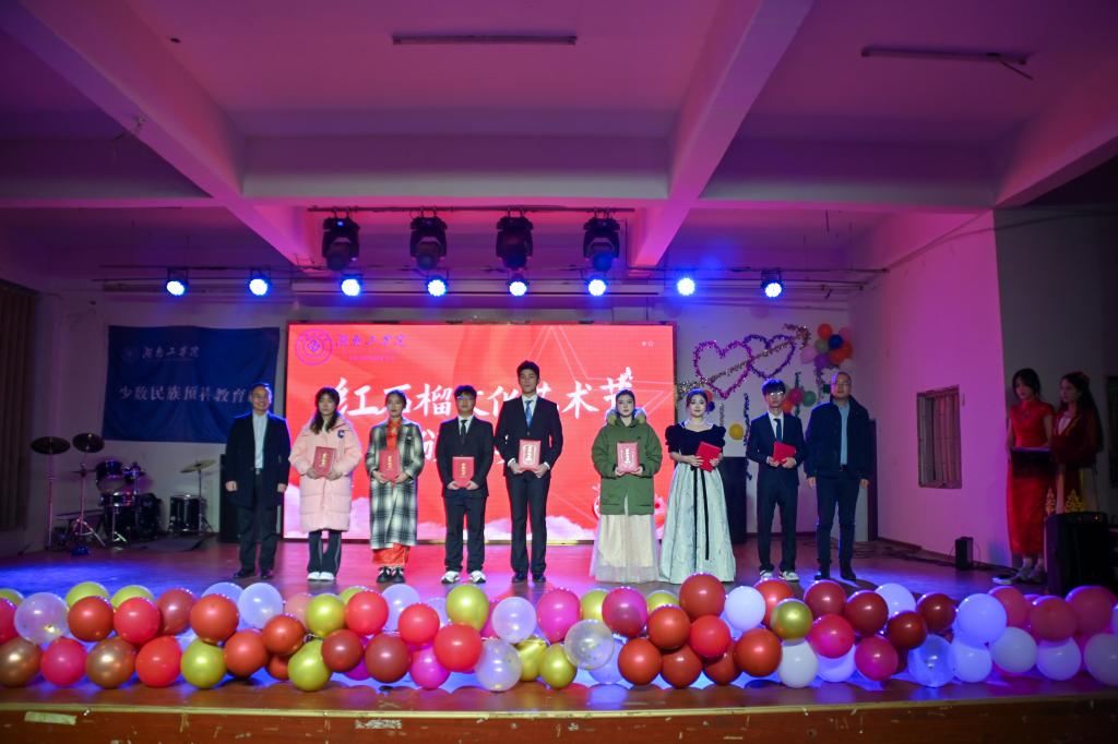 10分钟热场视频《相约湖工》深情回顾2023级预科生9月入校以来学习、生活的点滴温馨瞬间,引起现场师生热烈共鸣。随后,辅导员欧阳洪宣读少数民族预科教育部“红石榴”文化艺术节表彰文件,何建雄等领导依次为获奖先进集体和个人颁奖。