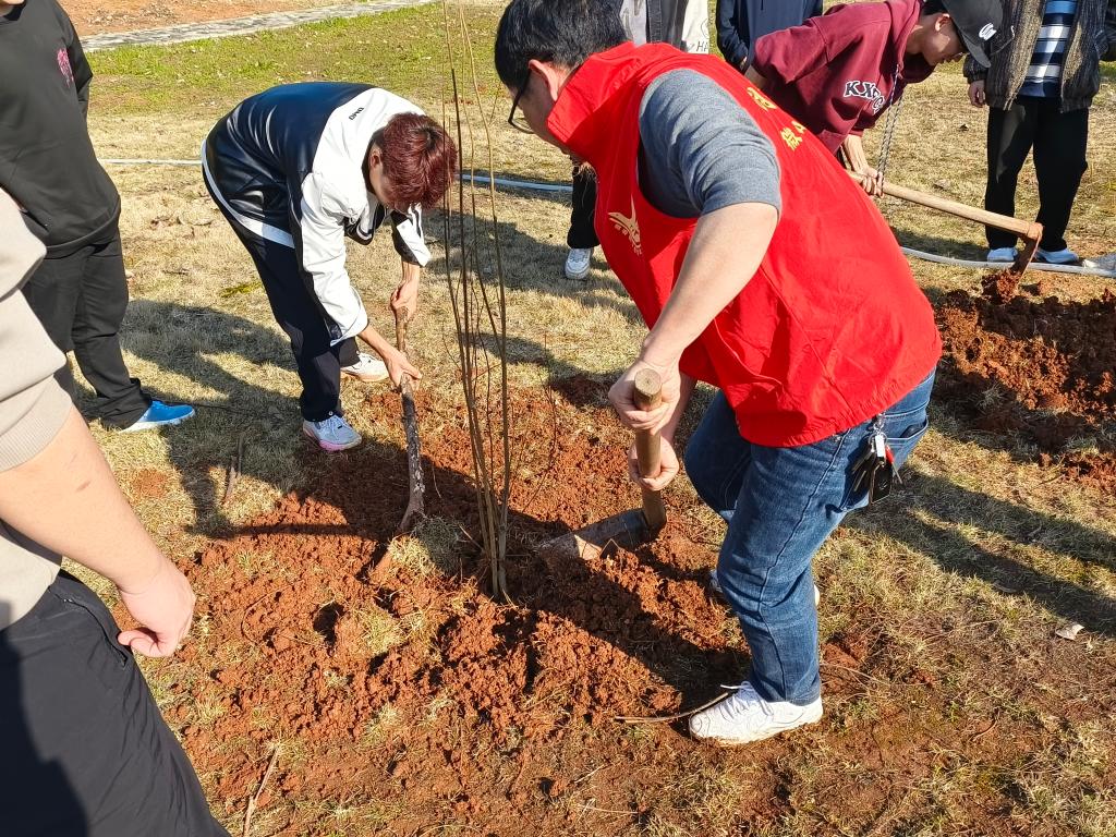 阳春三月,暖阳高照,在明媚春光里迎来了第46个植树节。3月12日下午,预科部学子延续传统,以“种下石榴树,开出团结花”为主题开展师生植树活动。100余位志愿者整装同行,播撒汗水,种下象征民族团结的石榴小树16棵,期望它们尽早发芽生根,茁壮成长。预科部领导及班主任一起参加了植树活动。