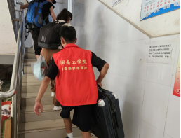 “同学好!家长好!”一声问候亲切温暖。“请问办理了助学贷款吗?是否完成了网上报到?”“校园一卡通的主要功能是......”,“宿舍的取水取电流程是......”。在迎新点,班助学长学姐们热情洋溢的服务感染着现场每一位学生和家长。