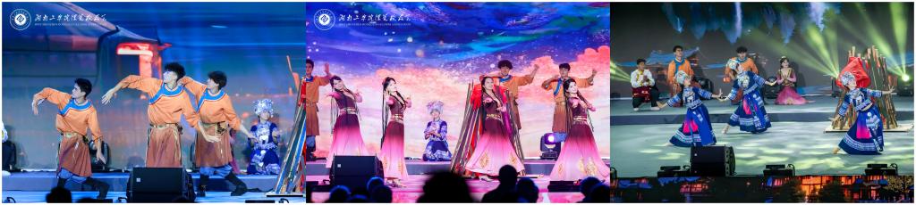 在校庆50周年文艺汇演中,多民族群舞《爱我中华》以饱满热情和绚丽舞姿赢得全场喝彩,生动诠释民族团结深情。