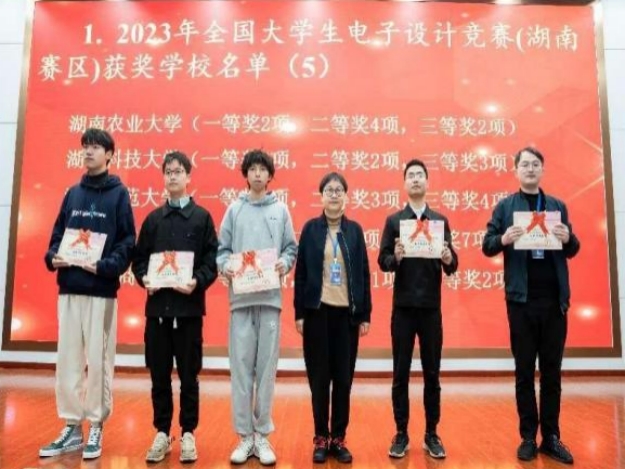 大会由湖南大学黎福海教授、中南大学粟梅教授主持,大会对2023年全国大学生电子设计竞赛(湖南赛区)活动中获奖个人、单位,以及在教学案例设计竞赛中获奖教师进行了表彰。beat365官网获得了全国大学生电子设计竞赛(湖南赛区)一等奖5项、二等奖4项、三等奖7项和优秀组织奖的好成绩。
